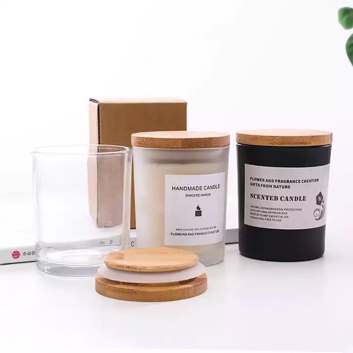 wholesale empty matte frosted white black clear glass candle jars with wooden lids for candle making |