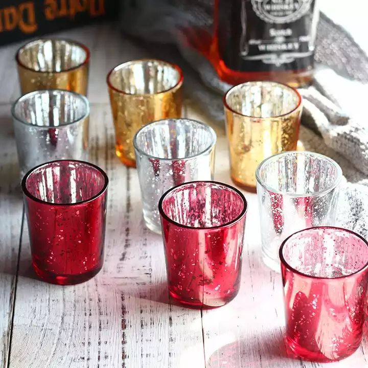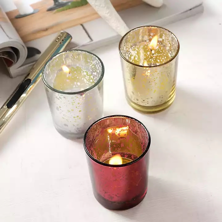 Wholesale Gold Silver Red Mini Shiny Glass Electroplated Candle Jar Holders Vessels with Lid for Soy Wax Scented Candle Making |