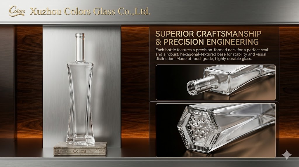 This tall slim 750ml glass liquor bottle is designed for premium spirits brands seeking a modern and elegant packaging solution.